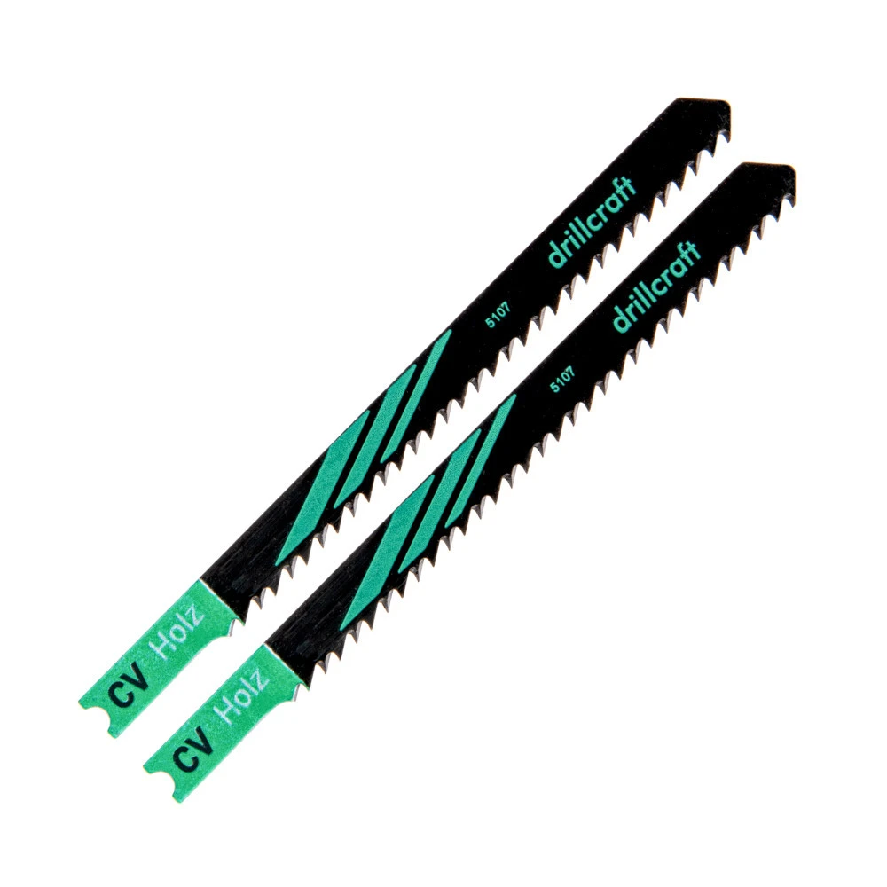 Das Stichsägeblatt von Drillcraft ist passend für Black & Decker, Skil, Ryobi und weitere Maschinen. Es hat 32 Zähne, die sich in einem Abstand von 2,5 mm verteilen. Die zwei im Lieferumfang enthaltenen Sägeblätter mit U-Aufnahme haben eine Gesamtlänge von ca. 100 mm. Das hochflexible Sägeblattstahl mit gehärteten Zähnen ist besonders langlebig und eignet sich sehr gut für Holz, kunststoffbeschichtete Hölzer und Kunststoffe.